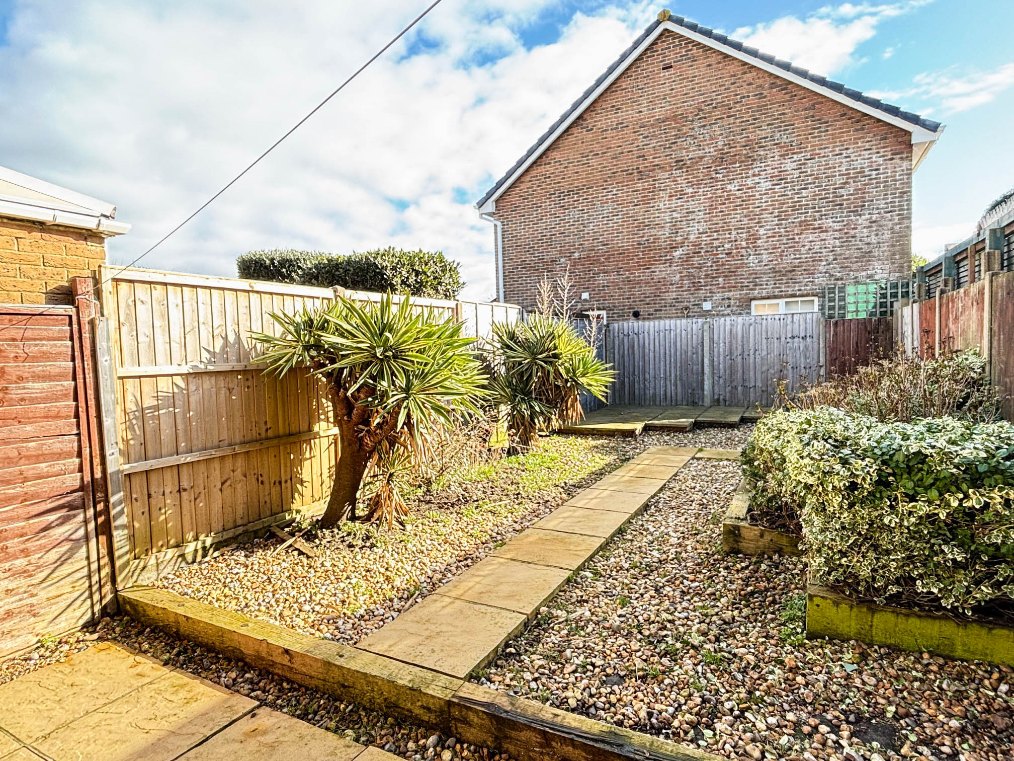 The garden to the front is mainly laid with pebbles, a meandering brick block path leading to the front door. The rear garden is fenced on three sides with gated access, designed for easy maintenance being mainly laid with pebbles. From the main patio a path leads to a further raised patio area to the rear of the garden. A single garage is located nearby.