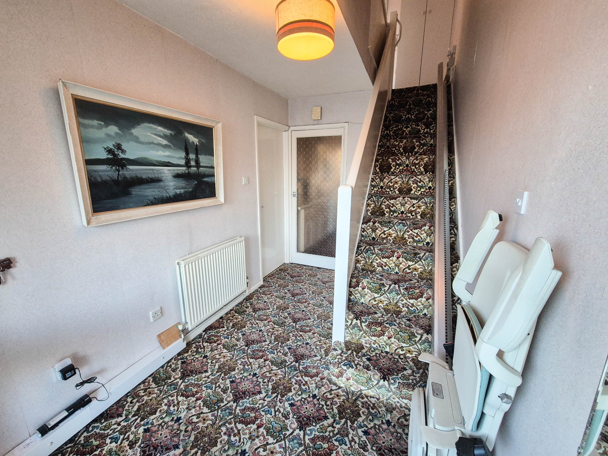 Over stairs storage cupboard, radiator.