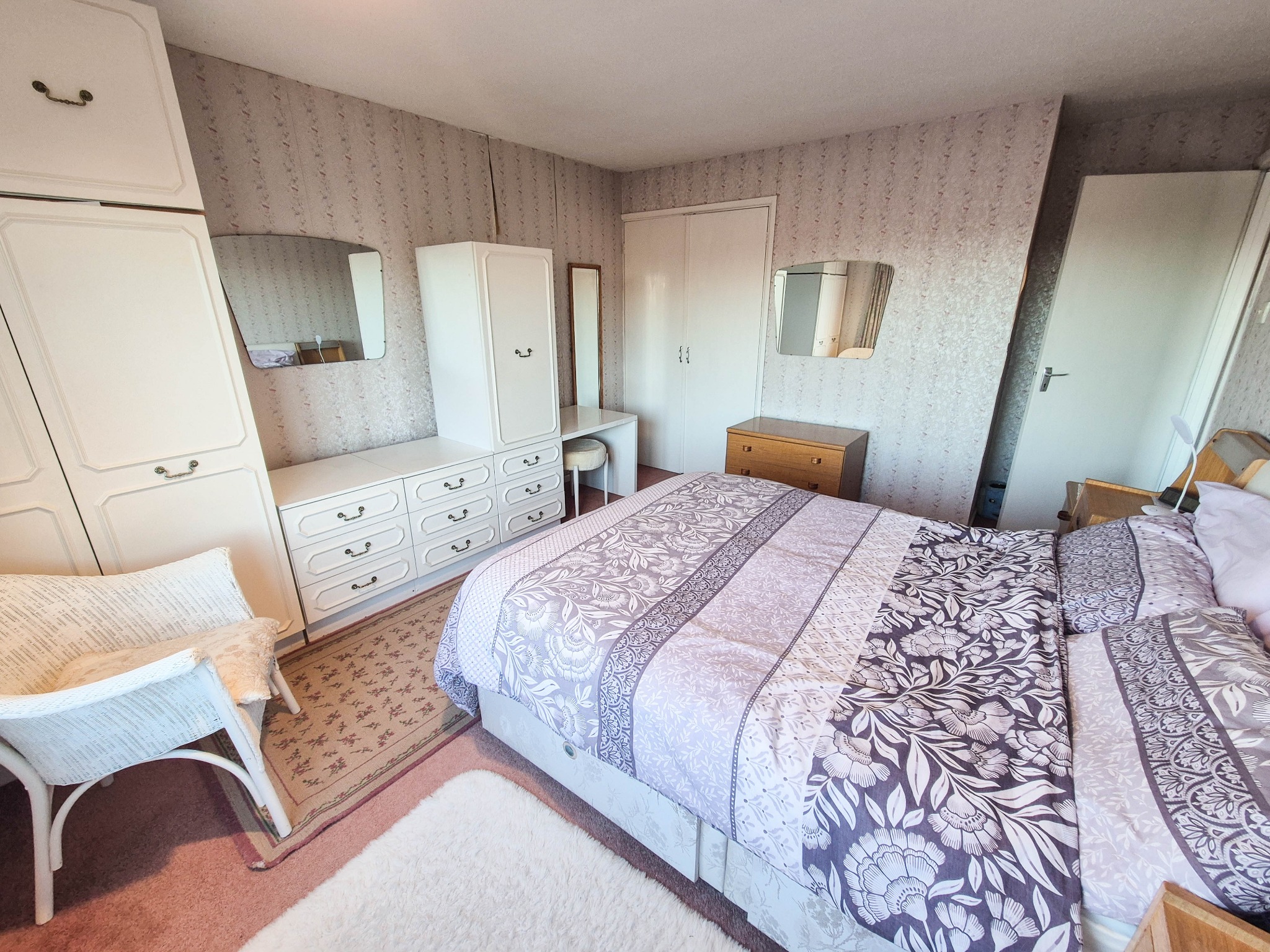 Wardrobe cupboard and cupboard housing gas fired boiler serving domestic hot water and central heating.