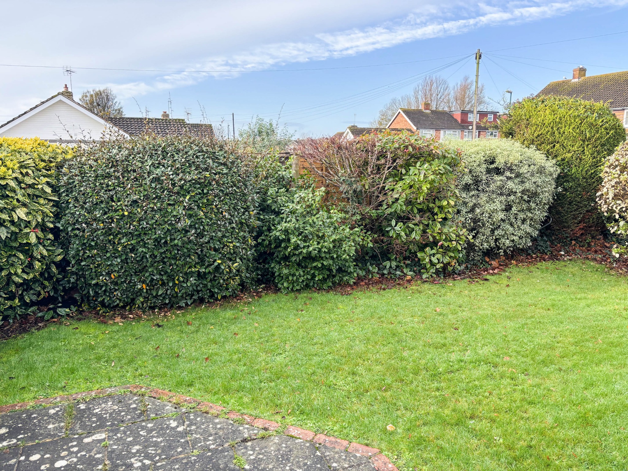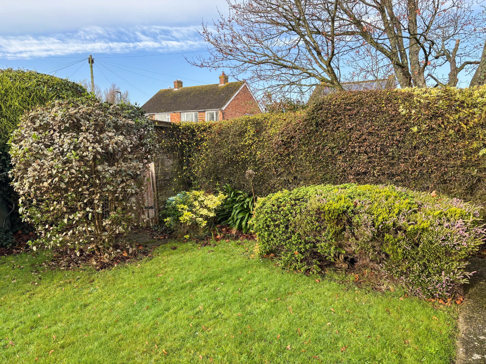 The rear garden enjoys a southerly aspect with established shrubs surrounding an area of lawn and paved terrace, timber garden shed, gated side entrance.