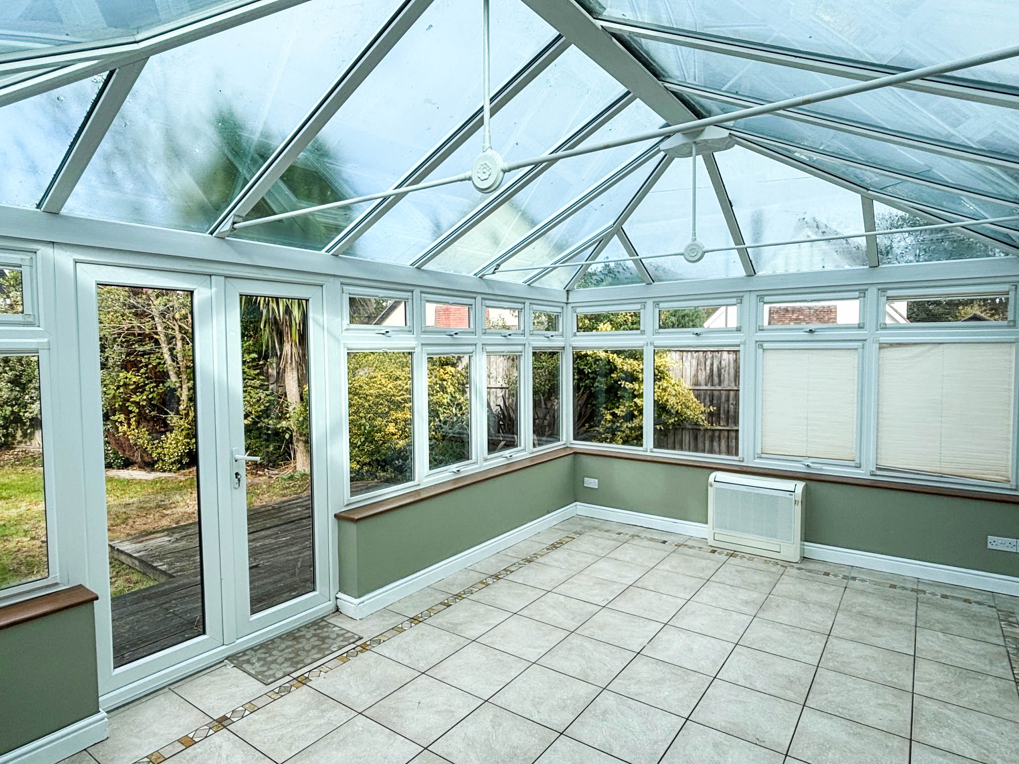 Enjoying a pleasant outlook over the rear garden with UPVC double glazed doors leading to an area of decking. Air conditioning unit, ceramic tiled floor with under-floor heating.