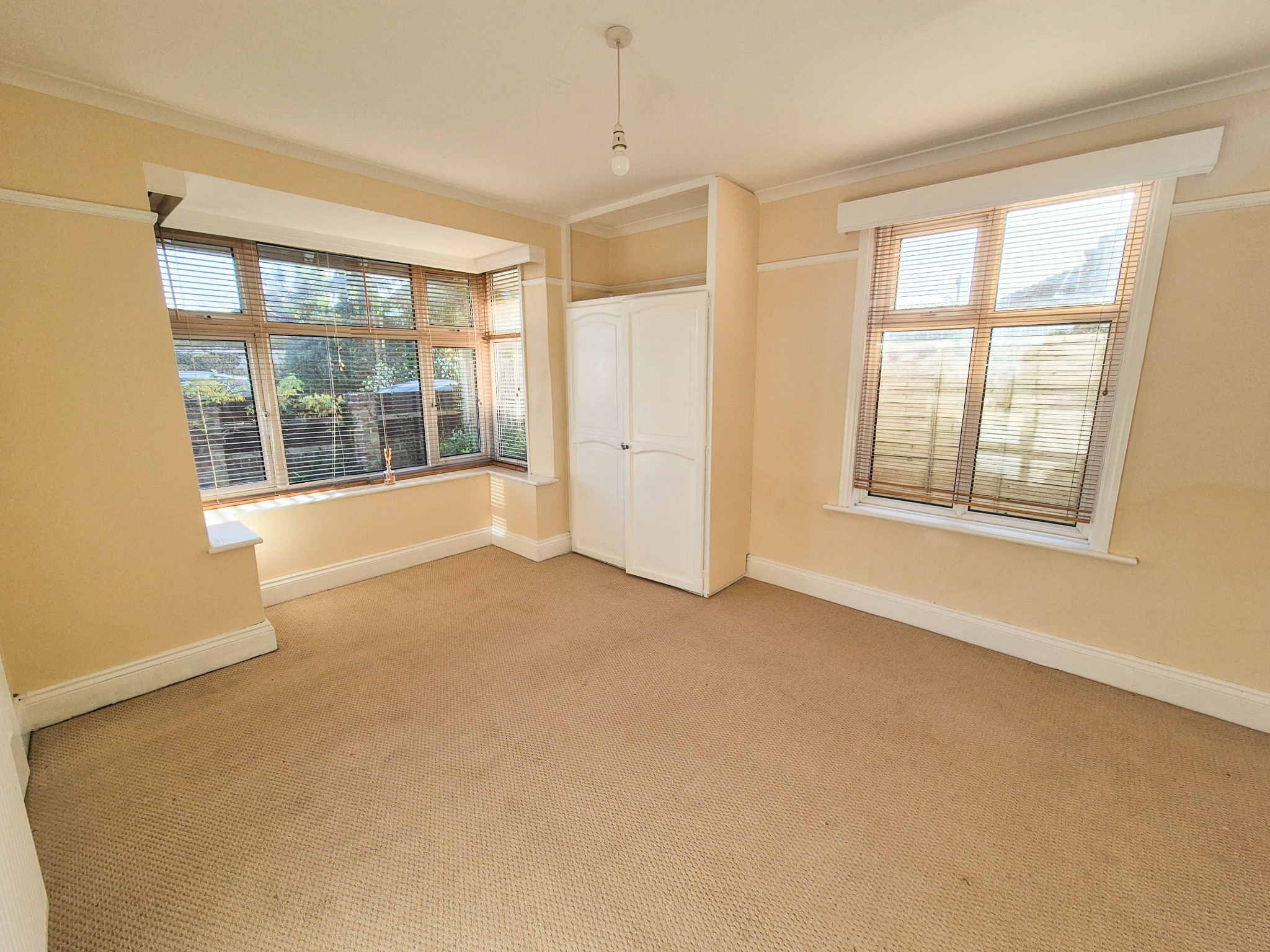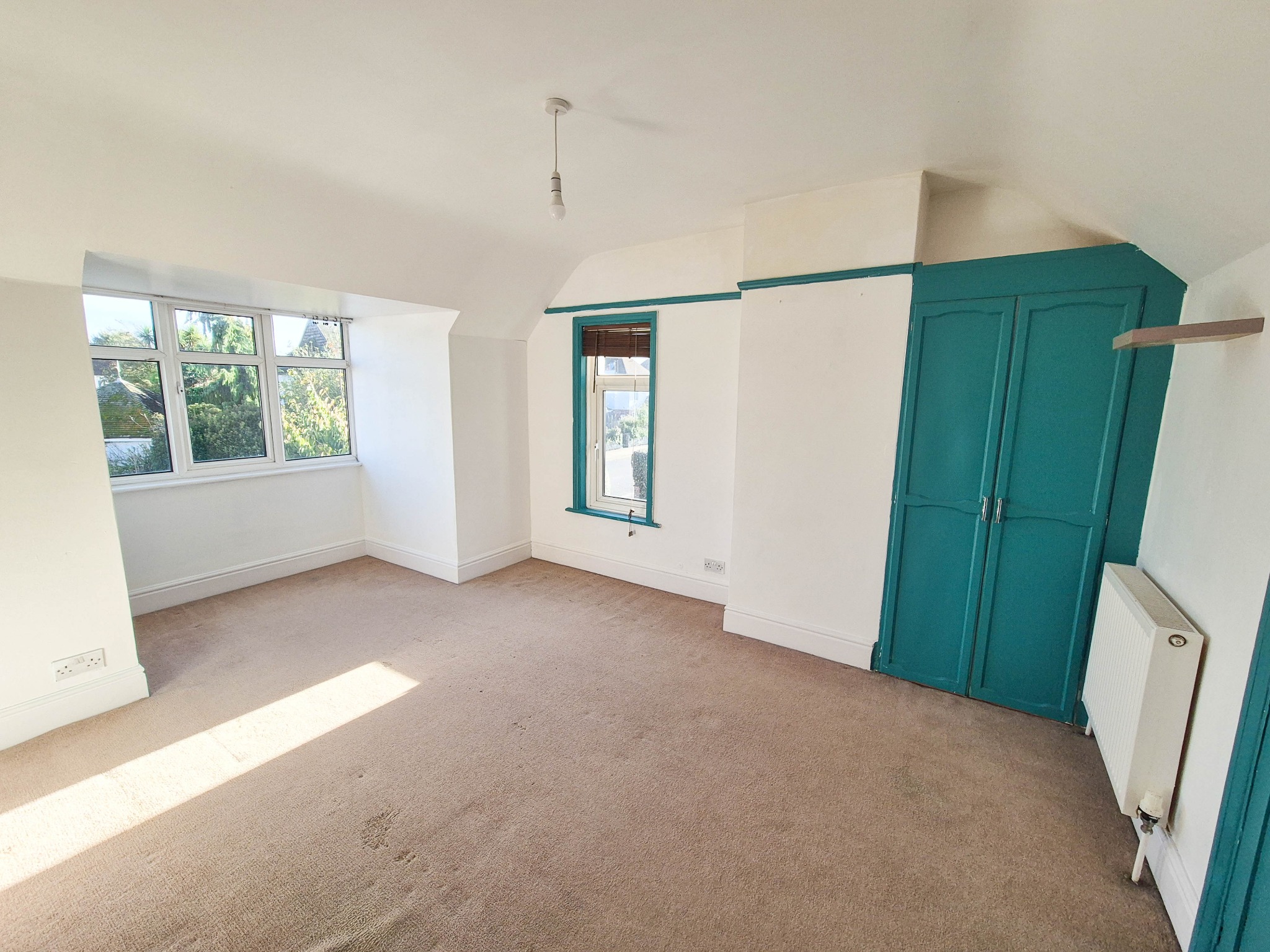 A bright double aspect room, fitted cupboard, radiator, linen cupboard.