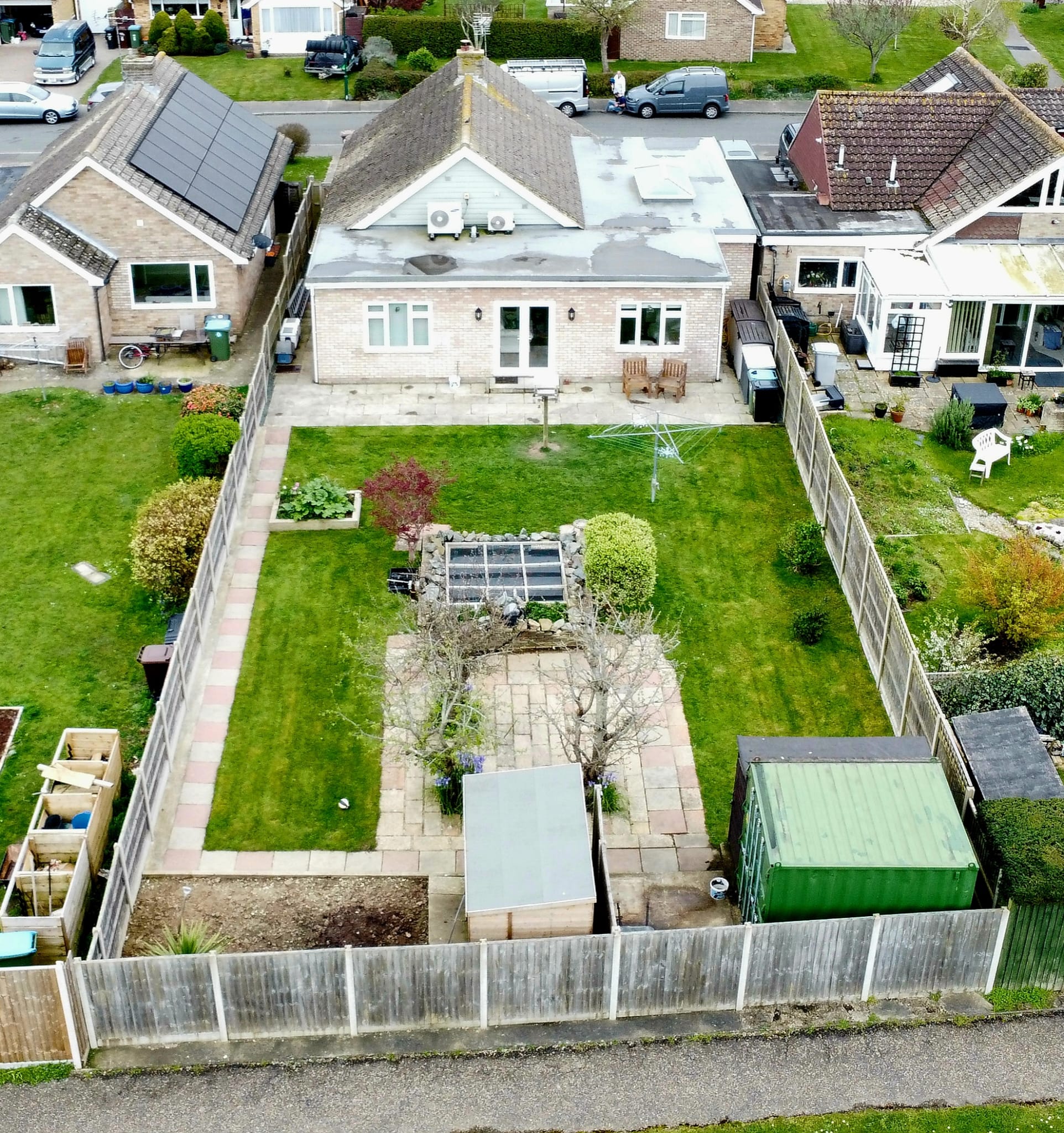 The property is approached via a tarmacadam driveway with space for vehicles and further area of lawn. The rear garden is a delightful feature of this home, having a paved terrace adjoining the property leading to lawn beyond, with established fruit trees and shrubs providing an attractive feature, with the remainder laid to lawn. Central to the garden is an ornamental fishpond with rockery surround. Two garden sheds and steel container ideally suited for storage. The whole is enclosed by boarded fencing.