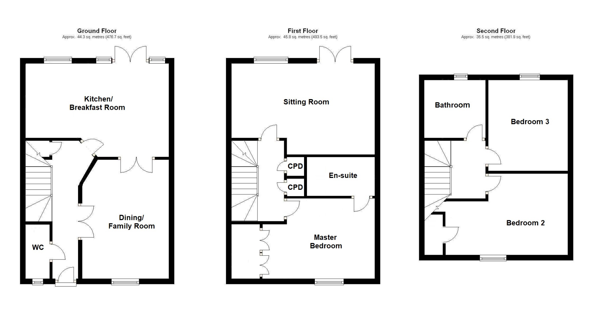 BEDROOM THREE 13' 4" (4.06m) x 9' 8" (2.95m)