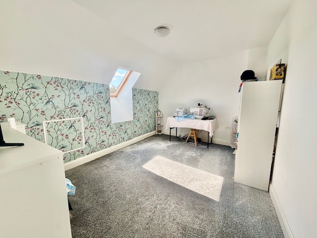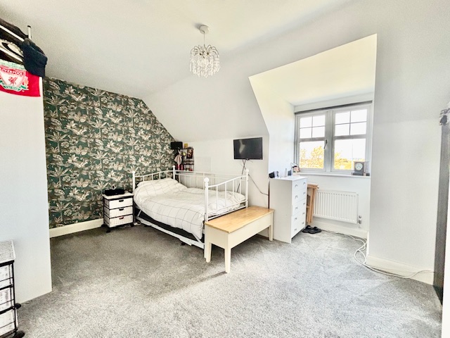 Maximum measurement but excludes the dormer recess and a built-in wardrobe cupboard with hanging rail and shelf above. Access to eaves storage. Double radiator. Telephone and television aerial points.