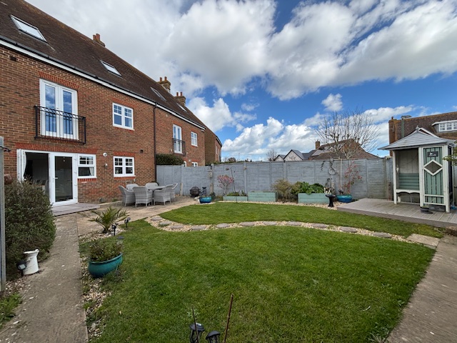 This well-presented mews style town house, constructed approximately 20 years ago, forms part of a highly sought-after development to the north of the village and commands far-reaching elevated views from the upper floors across to Goodwood. Elegantly arranged over three floors, the property offers generously proportioned and beautifully appointed accommodation comprising three spacious double bedrooms, two modern bath/shower rooms and two reception rooms ideal for both formal entertaining and relaxed living. Throughout the home, it is enhanced by bespoke plantation-style shutters to all principal rooms, discrete inset ceiling lighting and premium quality floor coverings, creating a seamless sense of style and comfort. Externally, the property continues to impress with off-street parking, a private garage to the rear alongside a thoughtfully landscaped enclosed south-facing garden perfect for alfresco dining and enjoying the sun throughout the day.