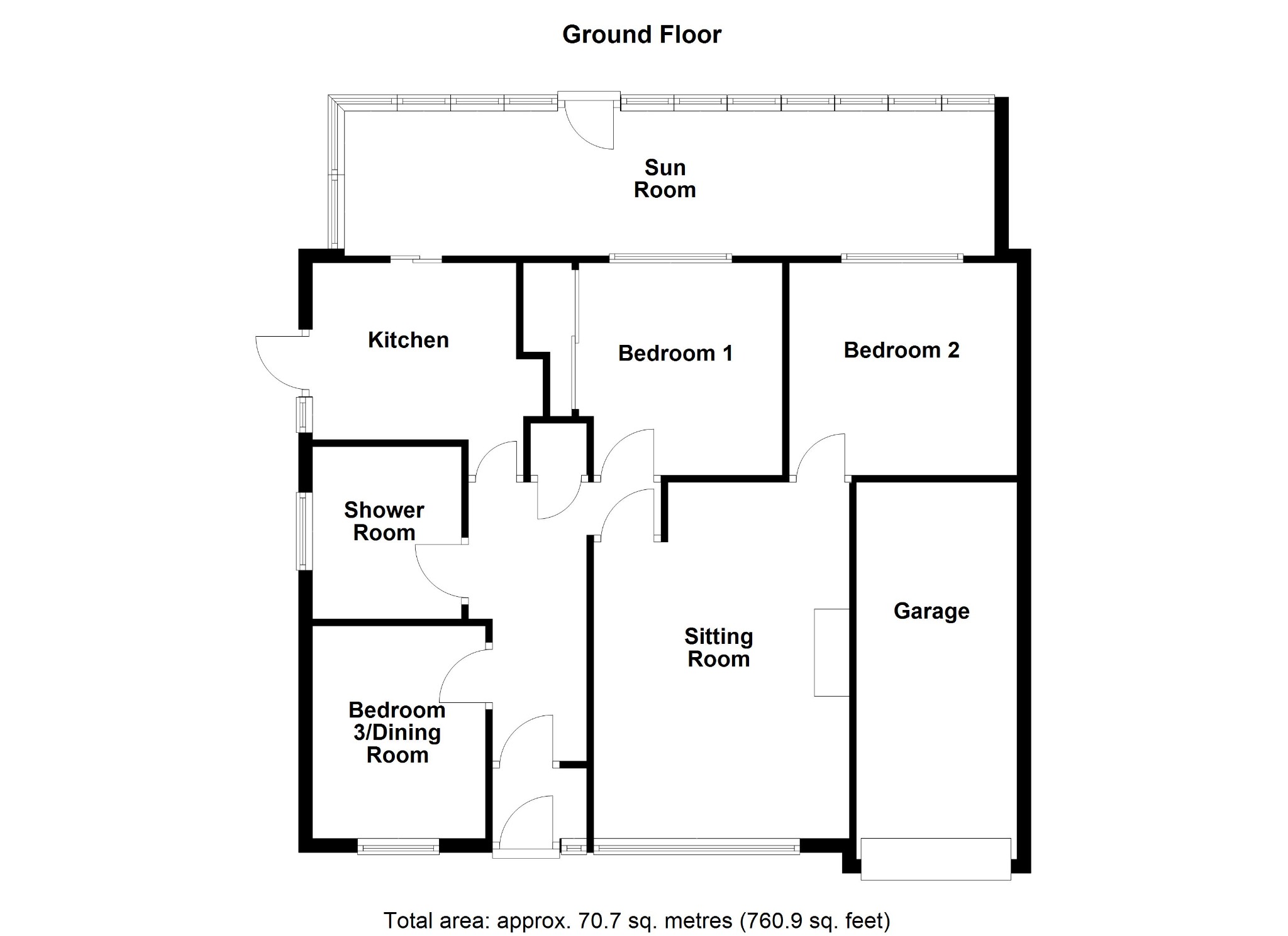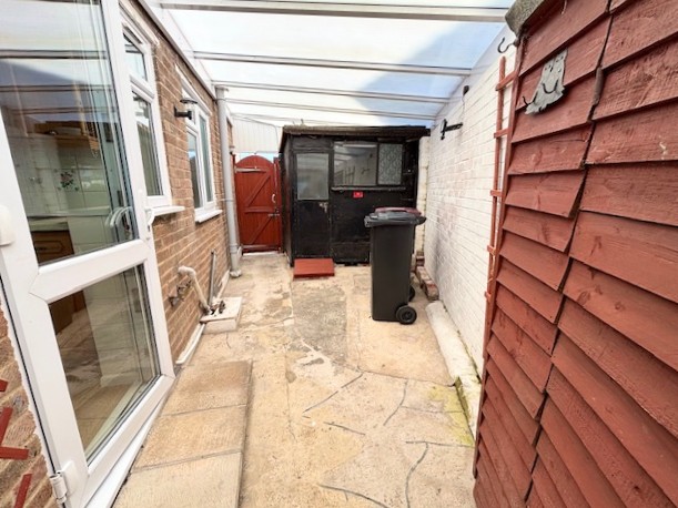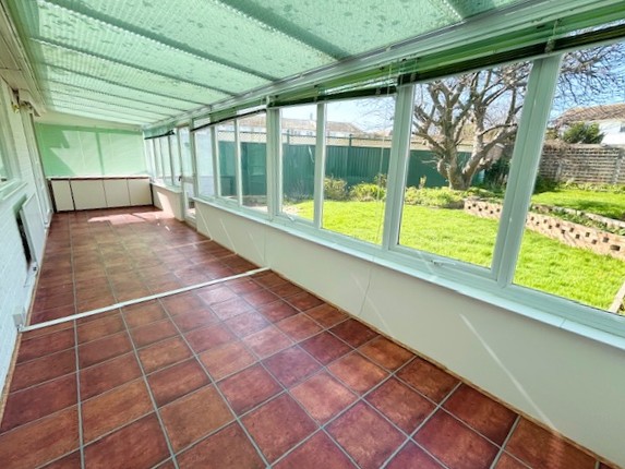 UPVC double-glazed upper elevations with a glazed roof. Built-in cupboard storage with work surface over. Two wall light points. Two radiators. Vinyl flooring. Double-glazed door to rear garden.