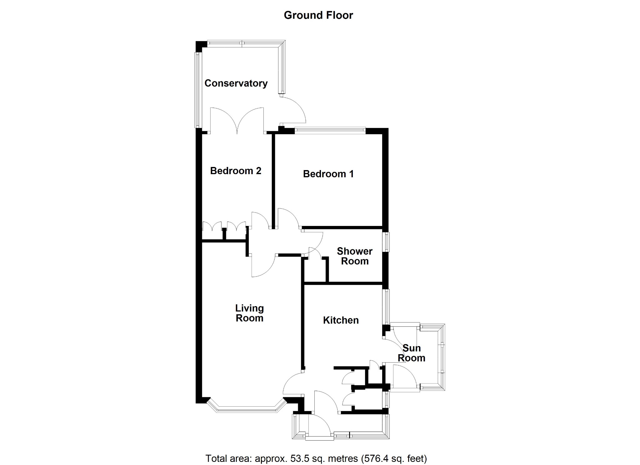 Dwarf cavity wall construction. UPVC double-glazed upper elevations. Poly carbonate roof. Door to rear garden.