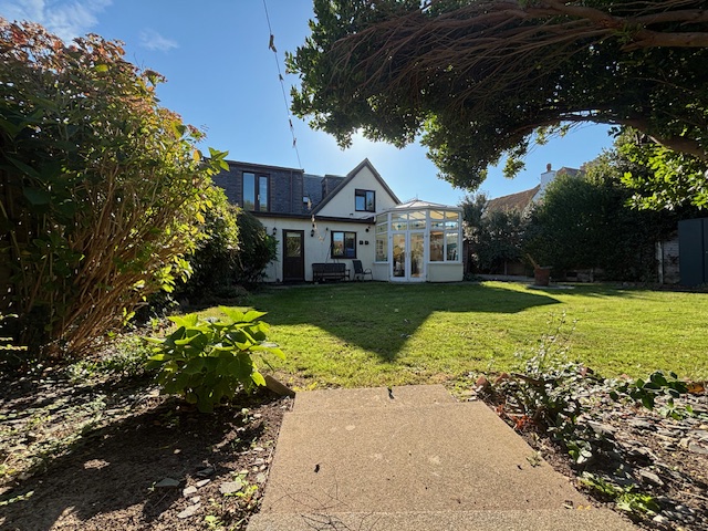 Situated on a quiet residential road just 300 yards from the seafront, this characterful detached chalet-style property dates back to 1908 and offers spacious, flexible accomodation ideal for family living. Located to the south of the village, the home enjoys first-floor sea glimpses and a peaceful setting. Currently arranged to provide four double bedrooms, two bathrooms, two reception rooms, and a generous conservatory, the layout is adaptable to suit a variety of lifestyles. Externally, the property benefits from ample off-street parking and a secluded rear garden, perfect for relaxing or entertaining.