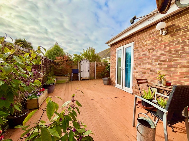 OUTSIDEThe property occupies a generous corner plot with brick paviour frontage providing off-street parking for several vehicles. Remote controlled electric garage doors give access to the covered carport measuring 17'3 (5.26m) x 9'3 (2.82m) housing an EV charging point with gated pedestrian access to the rear garden. A particular feature of the property having a raised deck seating area adjacent to the kitchen leading via a wide paved path to the main area of garden which is deceptively spacious and measures approximately 50' (15.24m) x 45' (13.71m) laid to lawn with established shrub and tree surrounds. A corner feature pond with bridge giving access to a pergola seating area. Timber workshop measuring 12' (3.66m) x 8' (2.44m) plus additional garden shed. External power and lighting.