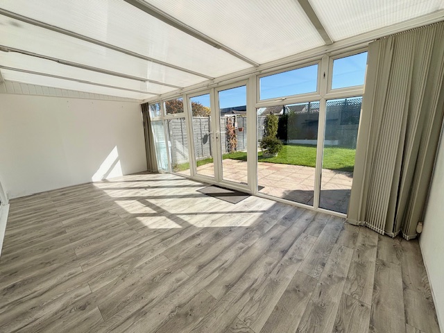 UPVC double-glazed construction with polycarbonate roof. French doors to rear garden. Double radiator.