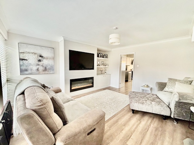 measuring 14' 9" (4.50m) x 9' 3" (2.82m) internal measurement, having French doors to the garden. Television aerial point. Inset LED ceiling lights. Wood laminate flooring.