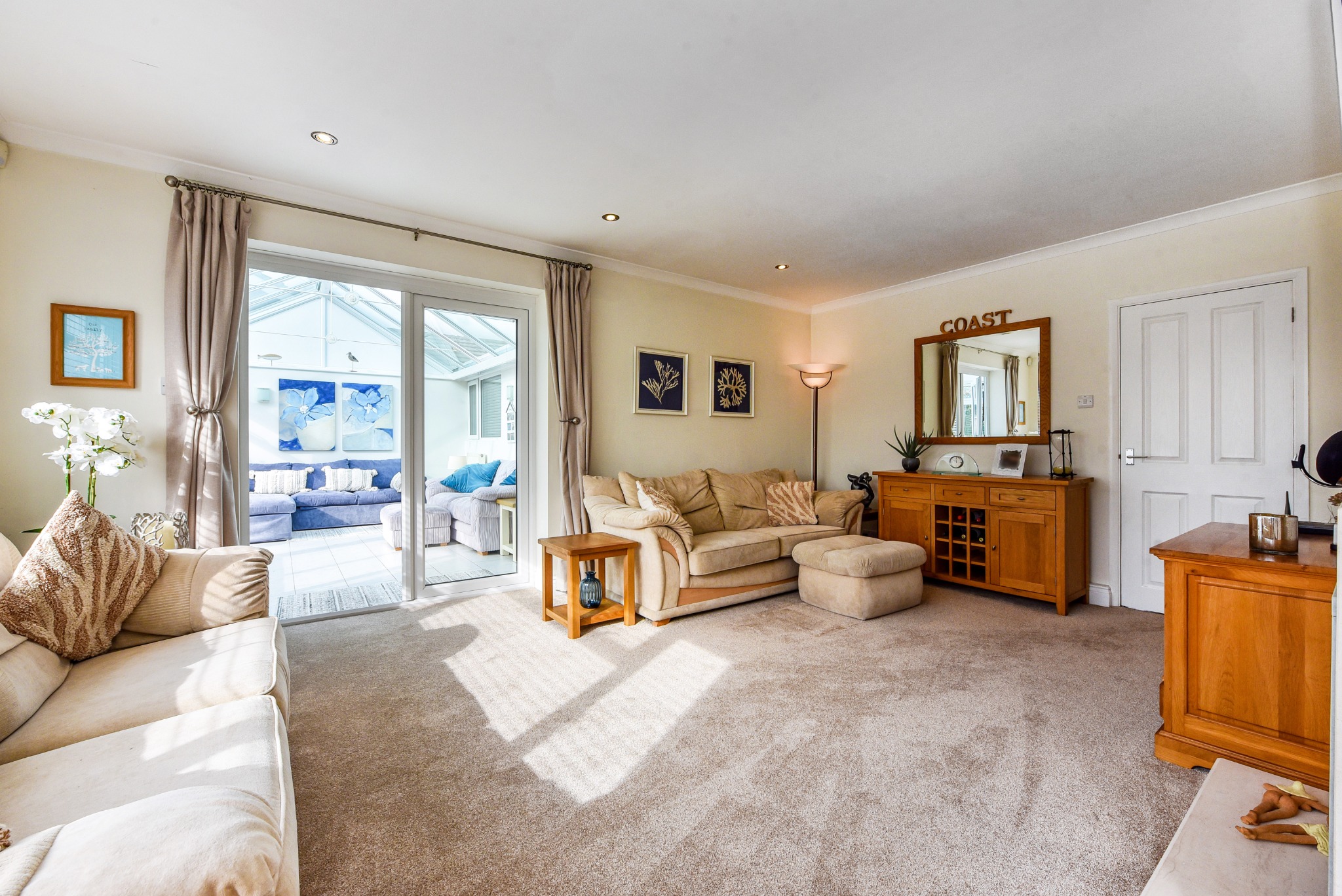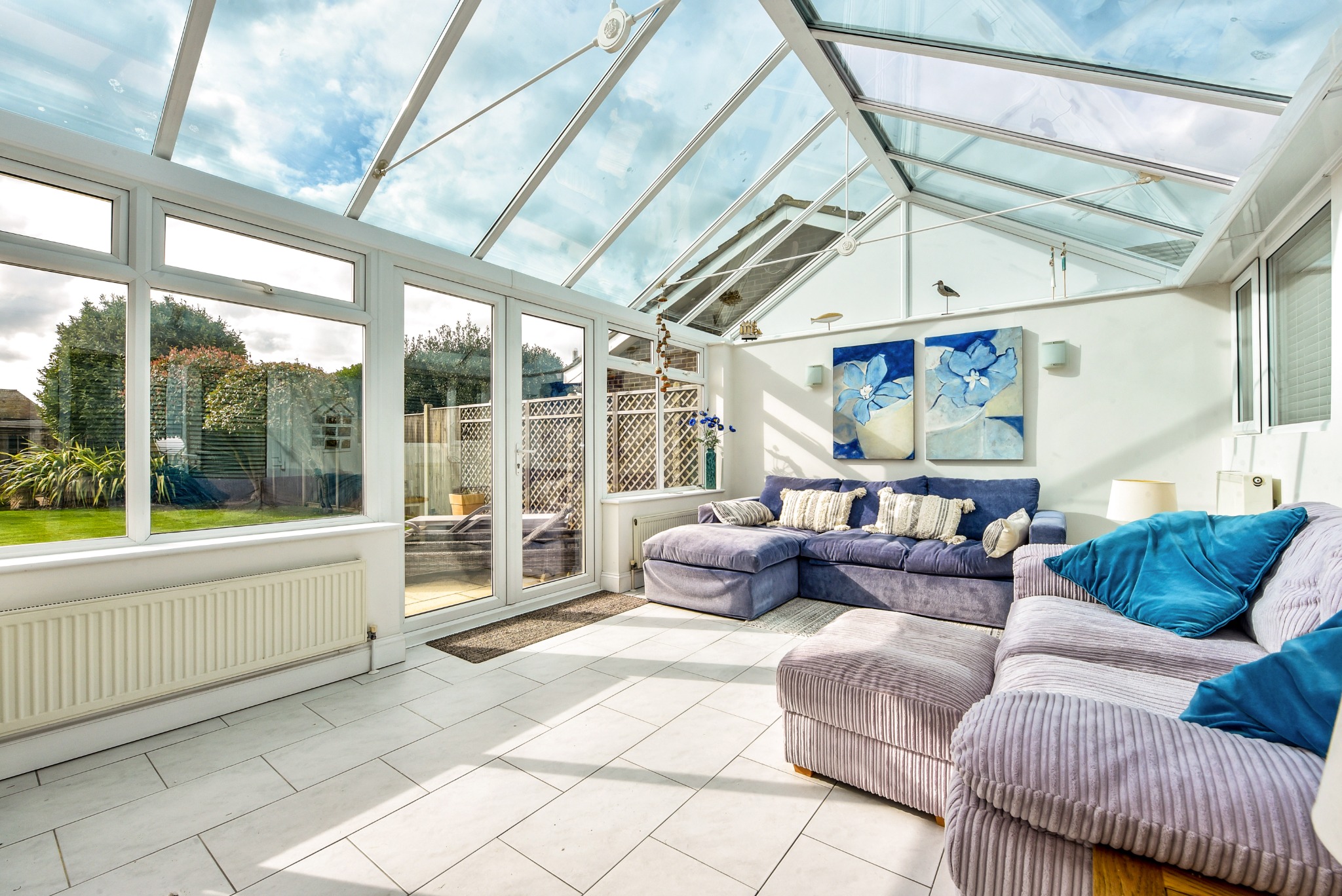 Of dwarf cavity wall construction with UPVC double-glazed upper elevations and a pitched glazed roof. French doors giving access to rear garden. Two wall light points. Two single radiators. One double radiator. Ceramic tiled floor.